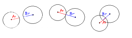 % Checks if a circle intersects a circle function circleIntersectsCircle (Ax : int, Ay : int, Ar : int, Bx : int, By : int, Br : int) : boolean result Math.Distance (Ax, Ay, Bx, By) <= Ar + Br end circleIntersectsCircle